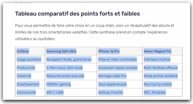 - Contenus existants ou informations sur vos concurrents dans la SERP.